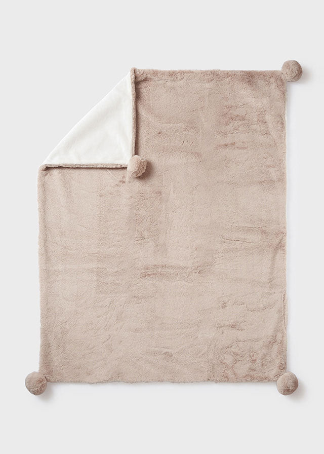 Coperta in pelliccia con pon pon