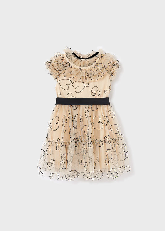 Vestito in tulle con cuori stampati e fascia in vita
