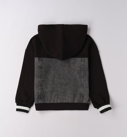 felpa miss cappuccio inserto jeans